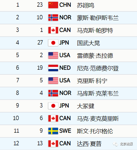 有网友通过比赛背心上的13号认出,这位抱起苏翊鸣的小哥,是来自加拿大的达西·夏普。虽然他在决赛12名选手中排名最后一位,但这一抱也让不少人记住了他。