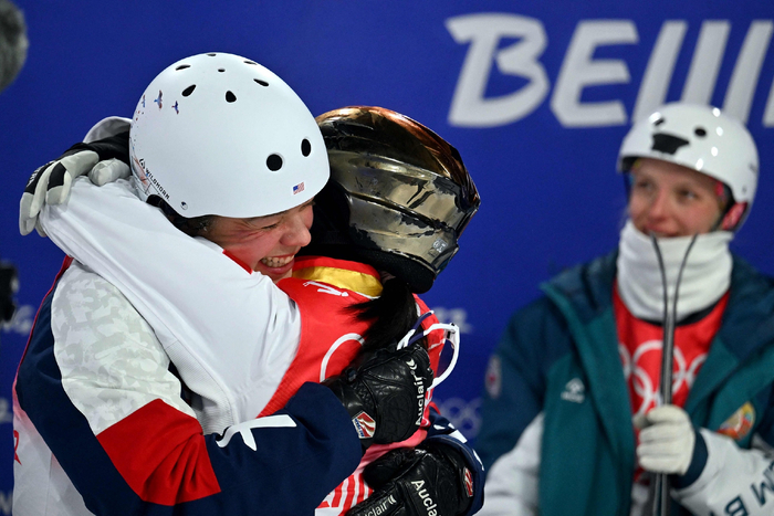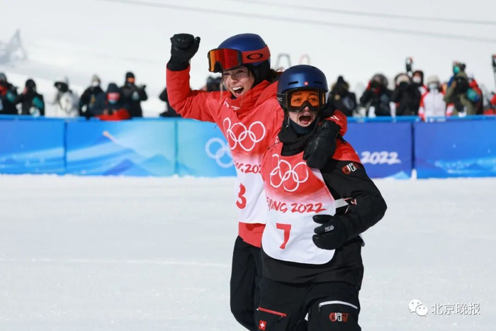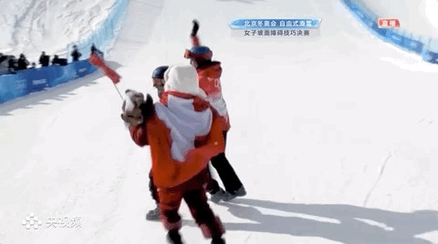 除了苏翊鸣被抱离地,昨天谷爱凌的一抱也让人感动。在自由式滑雪女子坡面障碍技巧决赛中,瑞士队选手玛蒂尔德·格雷莫德夺冠,获得银牌的谷爱凌大声欢呼,上前与她拥抱庆祝,开心得好像两人都拿了冠军!