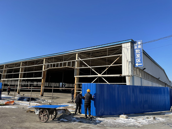 另外,记者在采访中了解到,迁出的水果和蔬菜零售摊或将在停售3个月后,迁至建材市场附近的大棚内。目前,工作人员正在该区域建设施工围挡,准备对过去应季水果批发区的大棚进行装修。