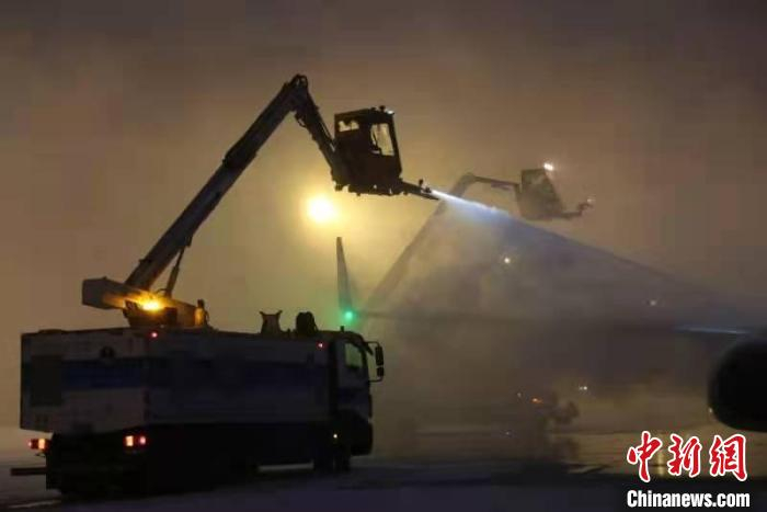 乌鲁木齐国际机场飞行区管理部为保证进出港航班的正常运行,及时启动除冰雪预案。 郭一彤 摄