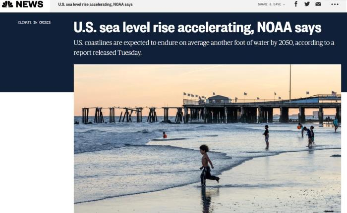 报告:美国周边海平面到2050年或平均上升至少25厘米