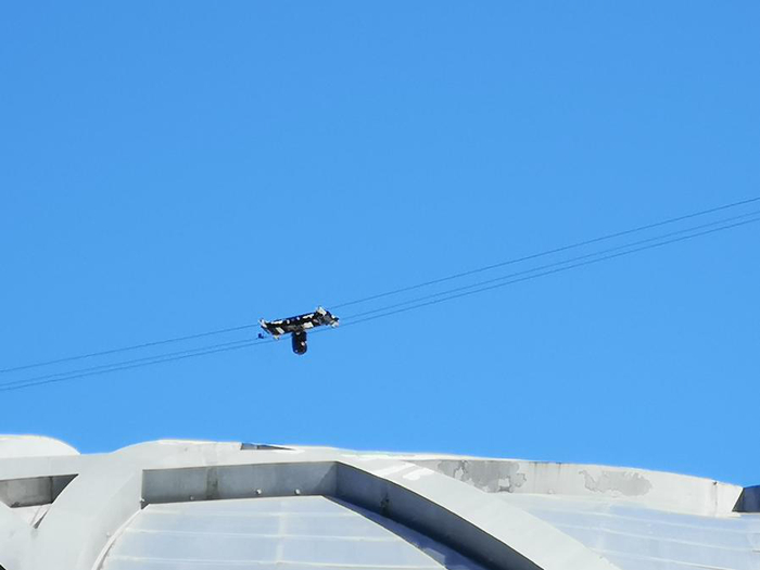 这种无线摄像机应用广泛,尤其在拍摄角度和区域都受到一定条件限制的区域,例如在跳台滑雪的比赛中,“雪如意”顶部与地面落差达130多米,相当于30层楼房的高度,布设在“雪如意”顶部和底部之间的“飞猫”可以全程记录下运动员“飞”的过程。