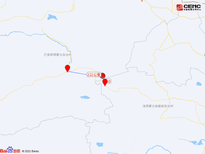 周边县城:震中距青海茫崖市50公里、距若羌县222公里,距吐鲁番市492公里,距乌鲁木齐市624公里。