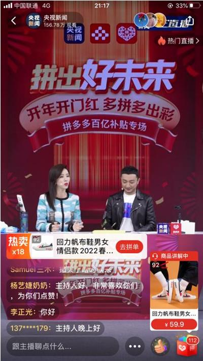 央视主持人拼多多直播间推介国潮好物助力实体经济
