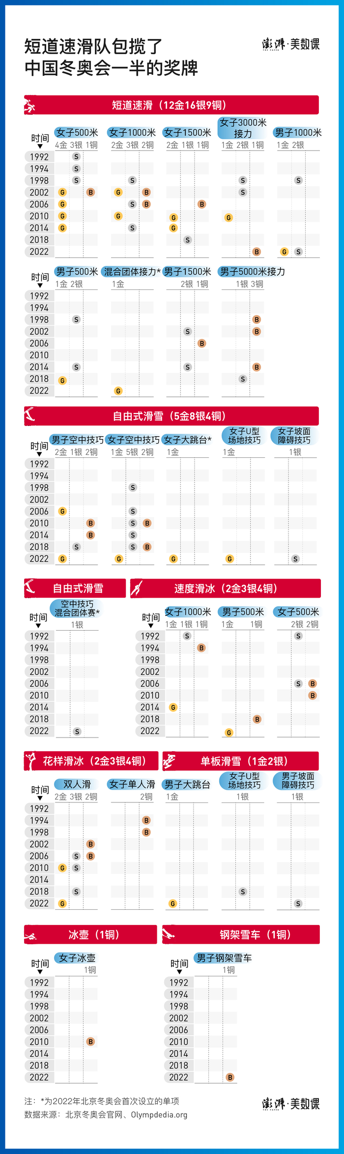 回顾42年中国冬奥夺牌历程,我们以77枚冬奥奖牌为主线,尝试勾勒中国在冬奥赛事上的发展与突破。