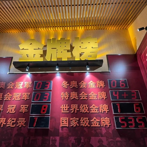 2022年2月11日,七台河短道速滑冠军展览馆,入口处就是一块金牌榜。新京报记者 杜寒三 摄
