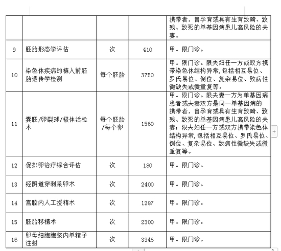 在规范调整63项医疗服务项目价格的同时,市医保局、市人力社保局同步配套了医保及工伤报销政策。其中,为实施积极生育支持措施,通过组织专家论证,在费用可控、确保医保基金可承受的基础上,将门诊治疗中常见的宫腔内人工授精术、胚胎移植术、精子优选处理等16项涉及人群广、诊疗必需、技术成熟、安全可靠的辅助生殖技术项目纳入医保甲类报销范围。据了解,目前我市具有辅助生殖资质的基本医疗保险定点医疗机构共15家。