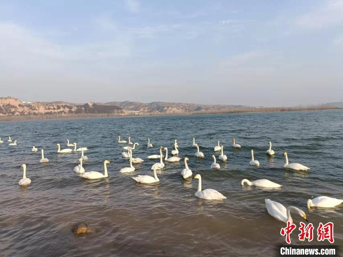 中新网运城2月21日电(高雨晴 杨佩佩)记者21日从山西省运城市平陆县林业局野生动植物保护站获悉,由于降温降雪天气,在山西平陆越冬的近1000只西伯利亚大天鹅推迟“返乡”。