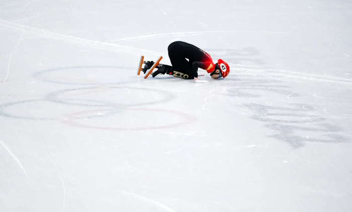 2月11日晚,北京冬奥会短道速滑男子5000米接力半决赛中,中国队遭遇意外,李文龙和加拿大队选手冰刀尖相撞摔倒,任子威奋起直追。