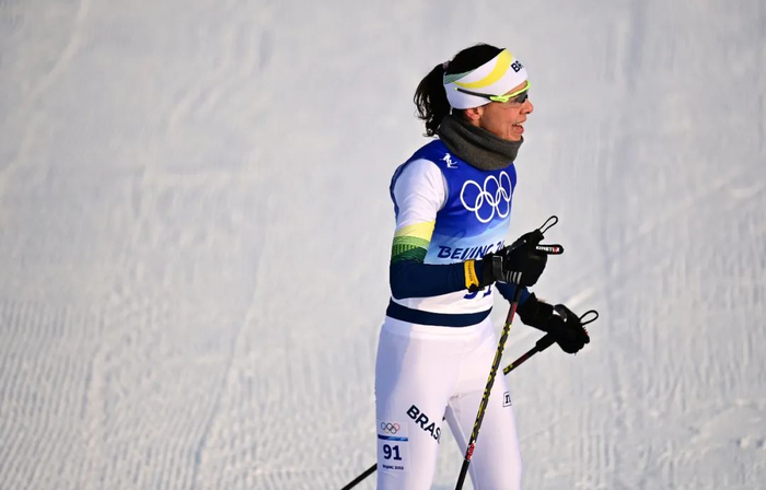 2月10日,46岁的巴西选手雅克利娜·莫朗以82名的成绩完成了北京冬奥会越野滑雪女子10公里(传统技术)的比赛,也使得她成为了为数不多的同时参加过北京2008年夏奥会和2022年北京冬奥会的运动员之一。她是史上第一名参加过八届奥运会的巴西运动员,其中包括五届冬奥会和三届夏奥会。新华社记者 张宏祥 摄