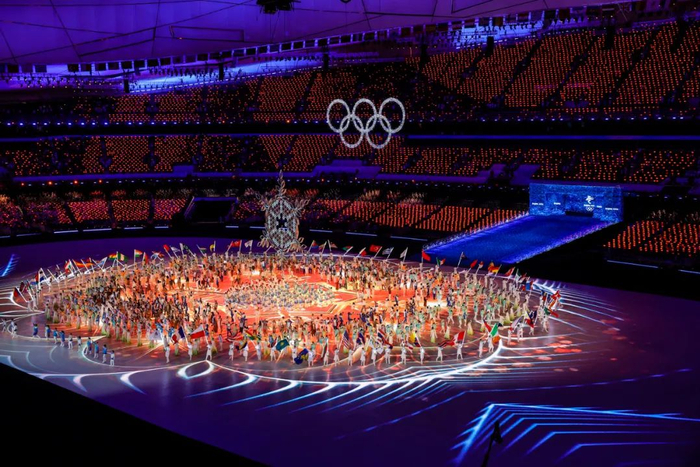 2月4日晚,第二十四届冬季奥林匹克运动会开幕式在北京国家体育场举行。这是中华人民共和国国旗入场。新华社记者 陈益宸 摄