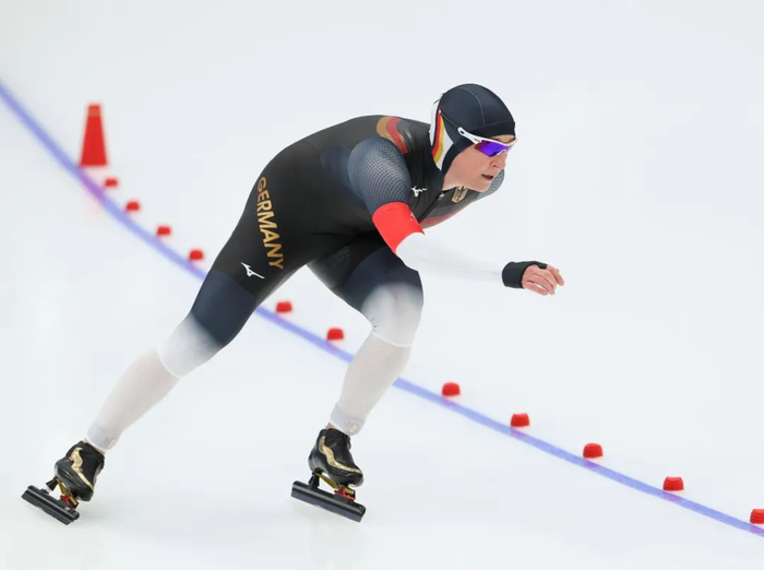 2月5日,德国选手克劳迪娅·佩希施泰因在比赛中。当日,北京2022年冬奥会速度滑冰女子3000米决赛在国家速滑馆“冰丝带”举行。新华社记者 程婷婷 摄