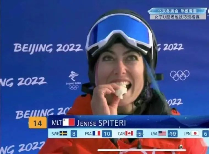 北京冬奥会上,珍妮丝·斯皮泰里是马耳他唯一的参赛运动员,2月9日出战单板滑雪女子U型场地技巧资格赛。这位马耳他滑雪小姐姐一天吃6个豆包,比赛间隙更是直接掏出豆包开吃:“早上太紧张吃不下,现在做完动作终于能吃了”。