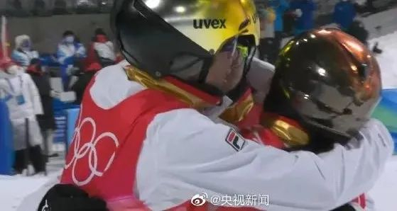 2月10日,在自由式滑雪空中技巧混合团体决赛中,贾宗洋在巨大压力下出现失误,非常懊恼,抱头嘶吼。队友第一时间送上了温暖的拥抱。