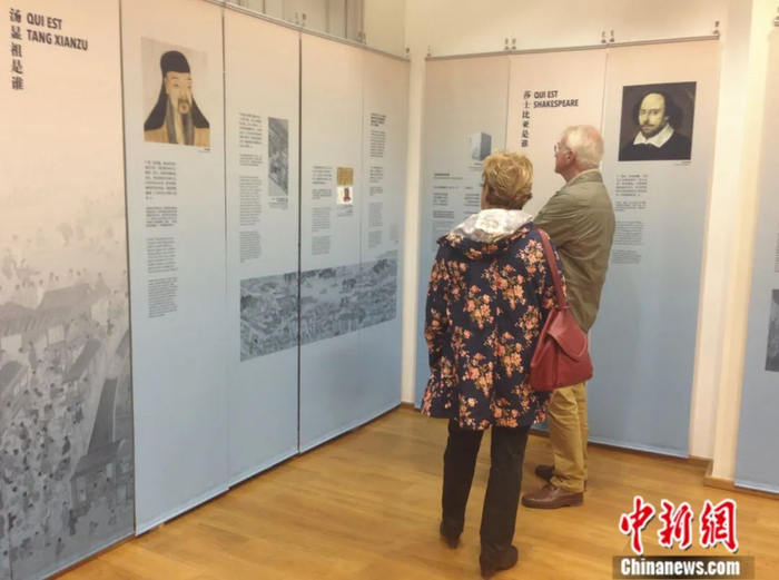 2016年,“跨越时空的对话”——纪念文学巨匠汤显祖和莎士比亚逝世400周年主题展在布鲁塞尔中国文化中心举行。中新社记者 沈晨 摄