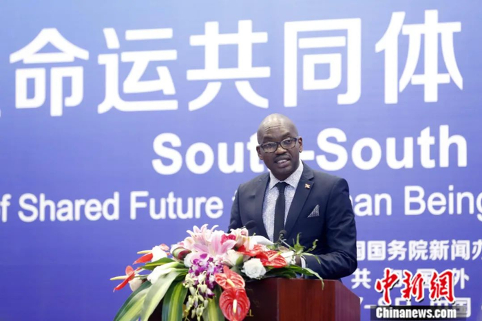 2017年12月,以“构建人类命运共同体:南南人权发展的新机遇”为主题的首届“南南人权论坛”在北京举行。来自70多个国家和国际组织的代表官员、专家学者300余人参加论坛。图为布隆迪总统首席新闻顾问威利·尼亚米特韦宣读“北京宣言”。中新社记者 韩海丹 摄