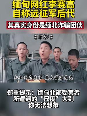 缅甸网红李赛高,自称远征军后代!其真实身份是缅北诈骗团伙!不要轻信高薪工作。