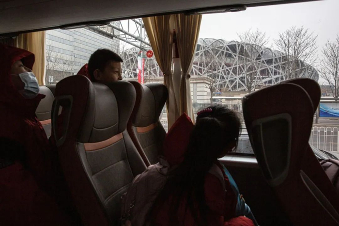 2月12日,马兰花合唱团的大巴车来到北京,抵达鸟巢附近的驻地。新京报记者郑新洽 摄