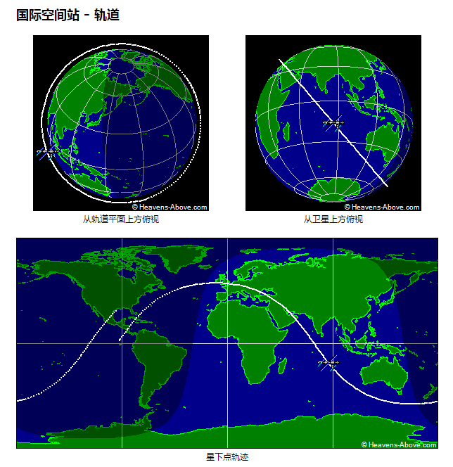 Heavens-Above是一家由克里斯·皮特创建并运营的非营利天文网站,可以查询卫星信息、卫星轨道根式、卫星过境时间、日食信息等。上游小编通过该网站查询了解到,由于地球的自转,国际空间站的轨道在地球表面的投影范围很广,截至发稿时,空间站的投影已经过了澳洲、西欧及南美洲部分地区,北美大陆也将在某一时刻位于空间站投影的下方,可以说人类的大部分活动区域都包含在其中。