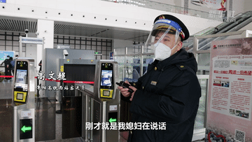 福州火车站工作人员给返乡老人讲解乘车注意事项。新华社记者 林善传 摄
