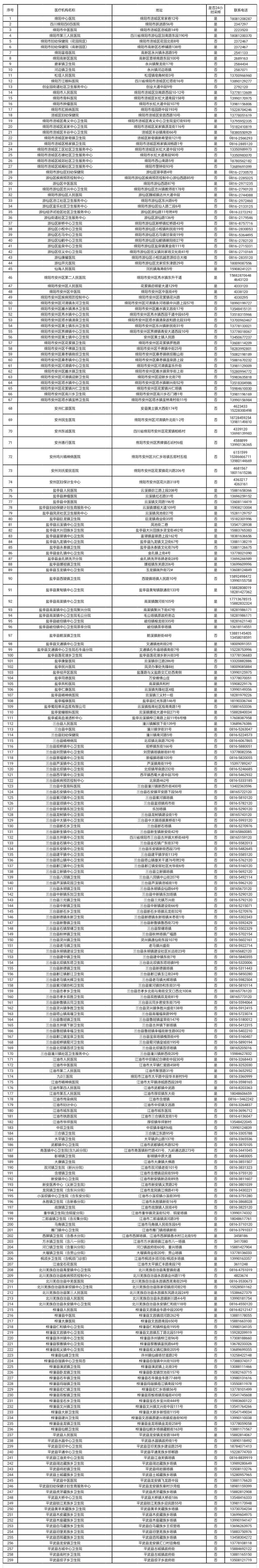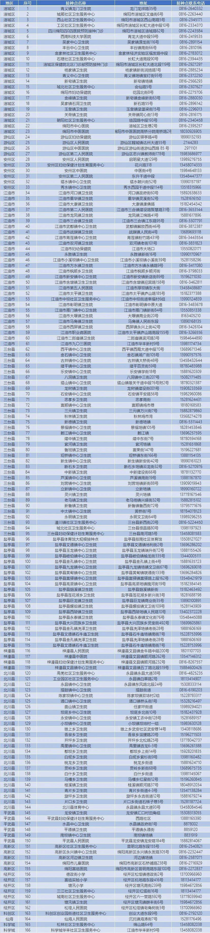 绵阳市疫苗接种单位名单