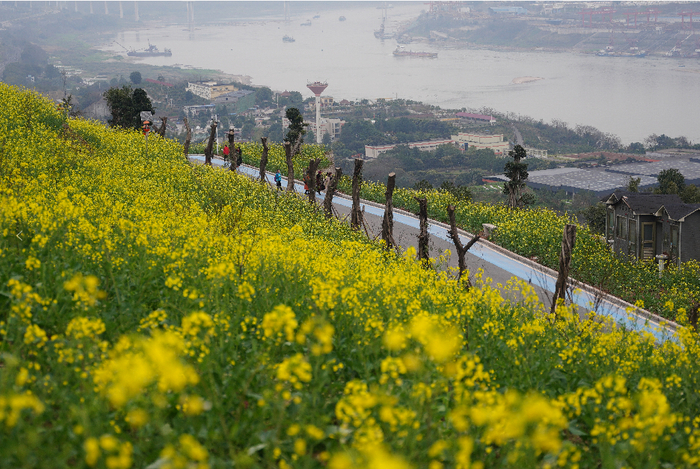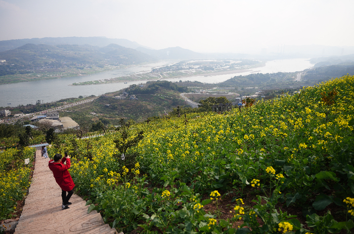 据介绍,石盘村的油菜花田占地200亩,油菜花品种为迎春一号和庆油三号,油菜花田位于大渡口大滨路石盘村段金鳌山下的长江岸边,从大渡口商圈驾车前往仅需十几分钟车程,从九龙坡、巴南及周边出发,半小时即可到达。