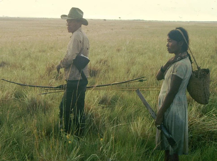 一对委内瑞拉土著夫妇正在草原上采猎,男的负责打猎,女的负责采集植物块茎,(图片来源:Wikipedia)
