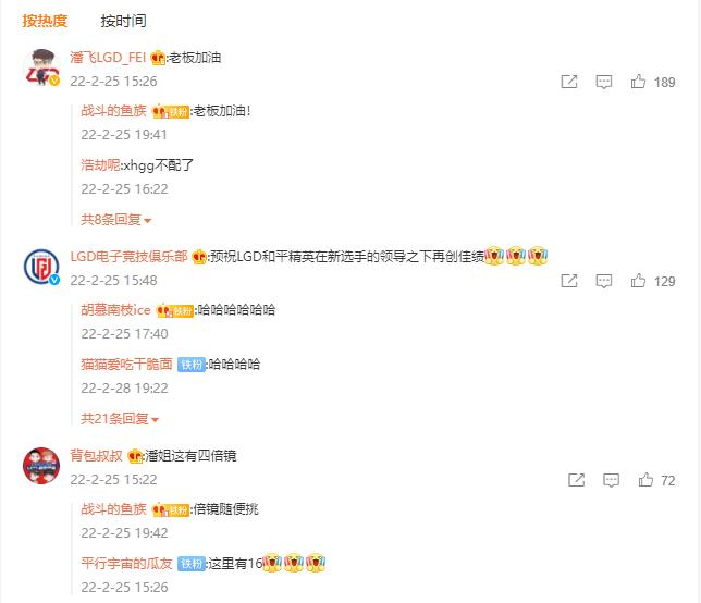 虽然外界对潘婕35岁打职业还有一些质疑的声音,但LGD电竞俱乐部肯定是力挺老板,俱乐部总经理潘飞带头在微博留言:“老板加油!”。