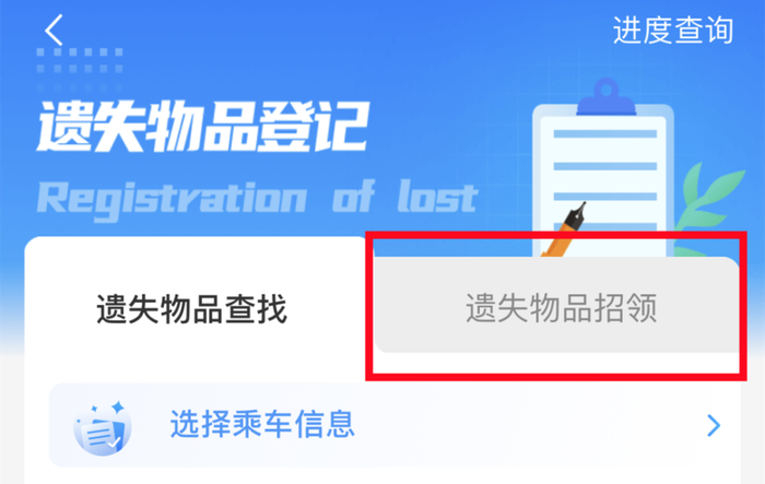 招领信息中未发现本人遗失物品的,您可以通过“遗失物品登记”填写本人遗失物品详情,并可通过“进度查询”关注报失及查找进度。