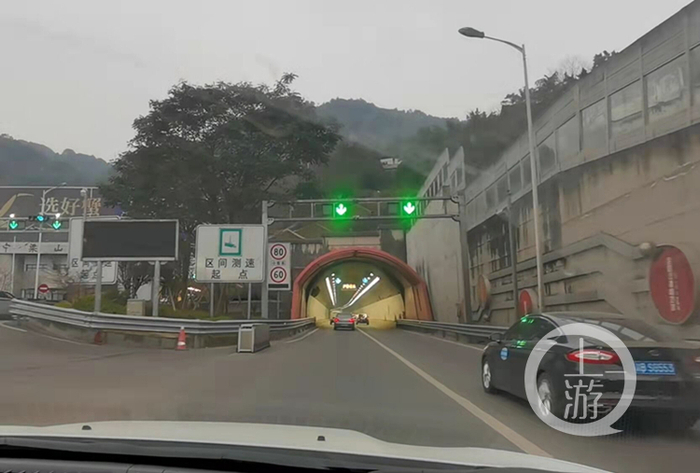 今(1)日早晨7点44分,上游新闻记者从西环立交方向进入中梁山隧道。