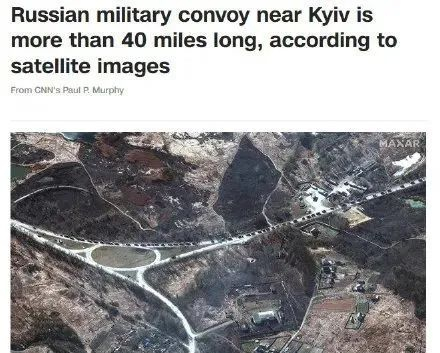 据美国有线电视新闻网(CNN)报道,美国Maxar科技公司最新卫星图像显示,乌克兰首都基辅附近的俄军车队有至少40多英里长(约64.3公里)。早些时候,Maxar还指,这支庞大的军事车队由装甲车、坦克、拖曳火炮和其他后勤车辆等组成。