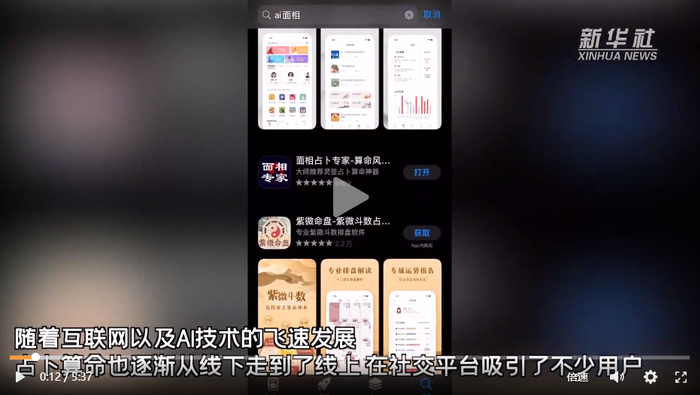 据新华社报道,随着互联网以及AI技术的飞速发展,占卜算命也逐渐从线下走到了线上,在社交平台吸引了不少用户。通过手机上传照片、个人信息,就能收到面相评分和命运报告。记者在某应用商店搜索“AI算命”“人工智能测面相”等关键词,会出现很多相关软件。“AI算命”不仅让用户为“命运”交出了智商税,也为个人信息泄露埋下隐患。