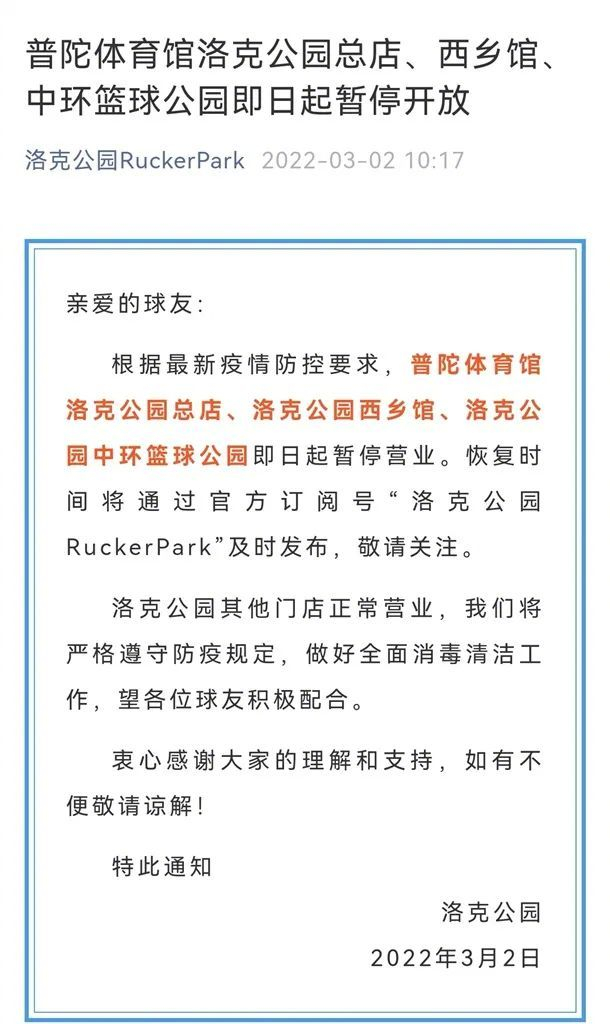 上海市体育局介绍,为做好疫情防控工作,普陀体育中心、普陀体育馆、曹杨游泳馆、真如体育场、中环篮球公园、普陀体育馆洛克公园总店、洛克公园西乡馆、洛克公园中环篮球公园即日起暂停开放,恢复开放时间另行通知。详见↓