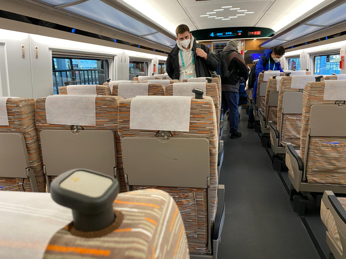 随着冬残奥会的临近,列车上乘坐轮椅的旅客也多了起来。车厢内,不但专门设有停放轮椅的地方,设有轮椅固定器,还专门增加了电源插座。列车长告诉记者,“瑞雪迎春”复兴号动车组的4号车厢是无障碍车厢,赛时,车厢还将进行无障碍设施的进一步升级,满足更多残障人士乘车的需求。