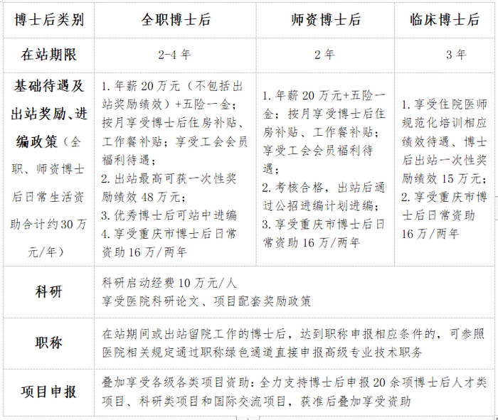 全职博士后、师资博士后必须保证在站期间能够脱产全职从事博士后研究;临床医学博士后为即将进入住院医师规范化培训和正在进行住院医师规范化培训的临床博士申报。