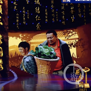 ▲张顺东、李国秀夫妻登上感动中国年度人物颁奖舞台。图片来源/央视截图