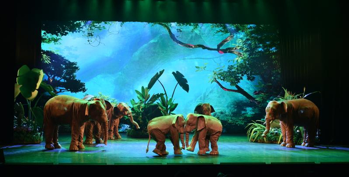 《大象来了》由中国野生动物保护协会指导,北京演艺集团、中国木偶艺术剧院出品,中华少年儿童慈善救助基金会公益支持。(陈冬小)