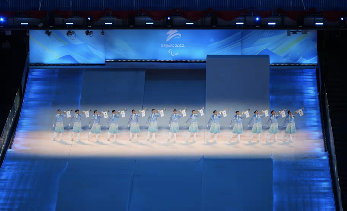举号、转身……伴随着嘹亮的小号声,在漆黑的国家体育场(鸟巢)里,一束聚光灯打在13名礼号手上,挂在小号上的残奥会会旗随风而动。3月4日晚,在北京2022年冬残奥会开幕式上,来自中国人民公安大学的礼号手们用干净利落、整齐划一的动作展示着青年一代的风采。