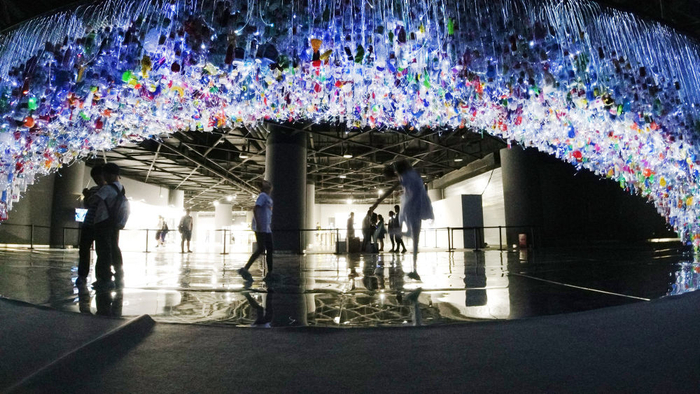 ▲2019年7月14日,上海科技馆展出装置艺术作品“巨环”。这个艺术作品由塑料制品组成,提醒人们减少产生和丢弃塑料垃圾。图/新华社