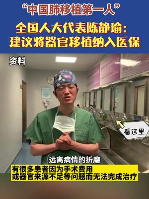 全国人大代表陈静瑜:建议将器官移植纳入医保
