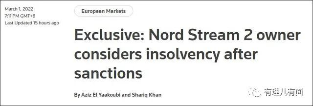 最近,有理哥看到了几则关于北溪二号项目的新闻。据3月1日外媒报导,设于瑞士的北溪二号天然气管道运营商Nord Stream 2 AG公司正在考虑申请破产。而早在22日,在俄乌冲突升级的背景下,德国政府已经宣布暂停北溪二号管道项目的审批程序。