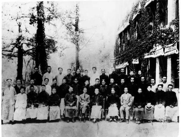 1926年,清华国学研究院首届毕业生师生合影。四大导师在前排就座。