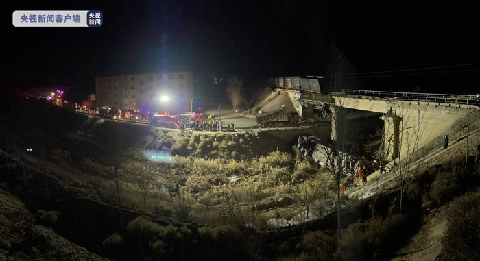 甘肃靖远一卡车撞上铁路桥,致过路火车车头脱轨坠落