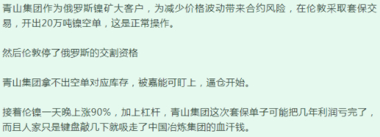 这不,俄乌战争打响后,俄镍被踢出伦敦金属交易所,无法交割,外资就开始搞事了↓↓