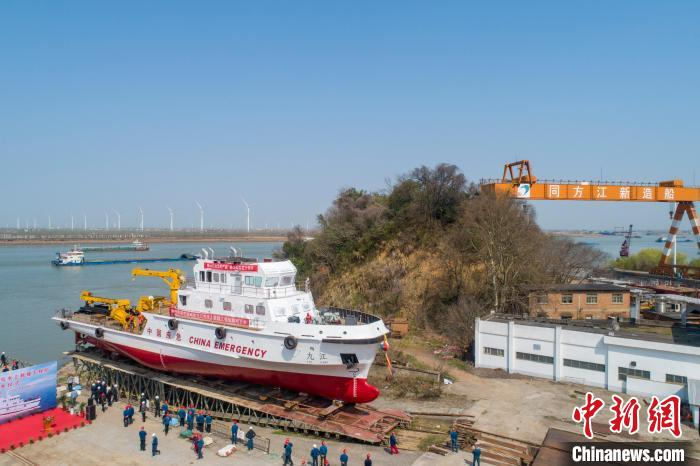 中新网江西九江3月11日电 (刘占昆 刘力鑫 李学华)中国首艘大型水上应急救援工程船“中国应急九江号”11日在江西省九江市湖口县同方江新造船有限公司码头建成下水。