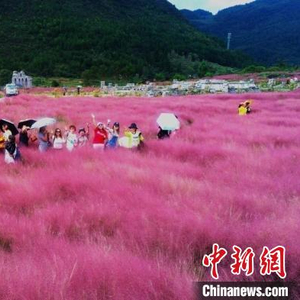 时下,正是春耕时节,景区一旁的农户们正在辛勤劳作,为即将到来的旅游旺季壮观的粉黛乱子草施肥除草。
