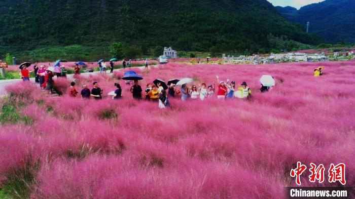 “我们流转了该区域内的3000亩土地,并从其它区域转运土壤进行部分填充,增加区域内的覆土面积,又播种了根系发达、能够忍受干旱炎热和贫瘠土壤的多年生草本植物粉黛乱子草进行水土涵养。”酉阳县桃花源旅游投资(集团)有限公司总经理唐万刚介绍,成片的粉黛乱子草如今成为一道美丽的风景线。