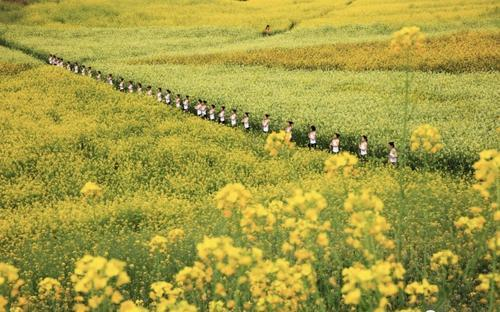仙龙镇万余亩油菜花层层叠叠,漫山遍野。田野缓坡,房前屋后,如梦似幻。或长空一色,或沃野千里,浮光跃金,客行花间,此乐何极。