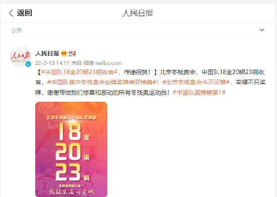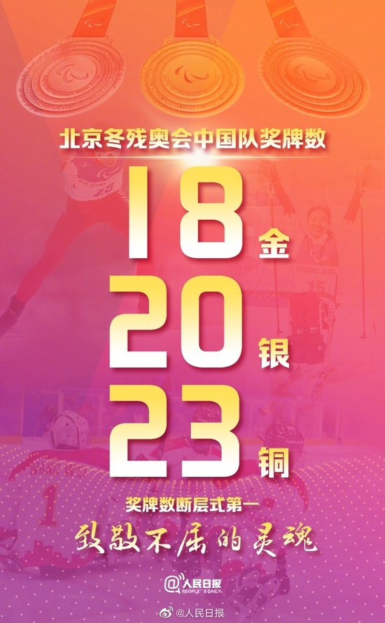 冬残奥会中国队18金20银23铜收官 实现金牌奖牌榜双榜首!