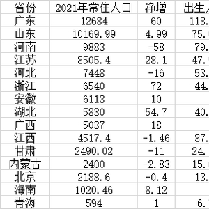 15个省份中,浙江、广东和湖北的人口增量位居前三;有12个省份公布了2021年出生人口数据,广东是唯一一个出生人口超百万大关的省份,而人口大省河南的出生人口自1978年以来首次低于80万人。